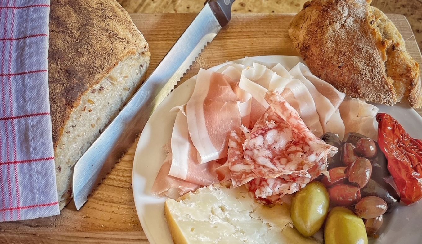 12.50 €Assortment of rolls, 2 free-range eggs (fried, scrambled or poached), salami, ham & cheese, homemade jam, muesli & yoghurt, butter -